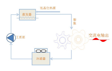 »ùÓÚÓлúÀÉ¿ÏÑ»·£¨Organic Rankine Cycle¼ò³ÆORC£©ÔÀí£¬ÀûÓÃµÍÆ·Î»ÈÈÔ´±¬·¢¶¯Á¦£ºÍ¨¹ýµÍ·ÐµãÓлú¹¤ÖÊ»ñÈ¡ÆäËû½éÖʵÄÈÈÄÜ£¬×ª»¯ÎªÑ¹Á¦ÄÜ£¬Í¨¹ýÅòÕÍ»ú½«Ñ¹Á¦ÄÜת»¯Îª»úеÄÜ£¬×îÖÕͨ¹ý·¢µç»ú½«»úеÄÜת»¯ÎªµçÄÜ¡£